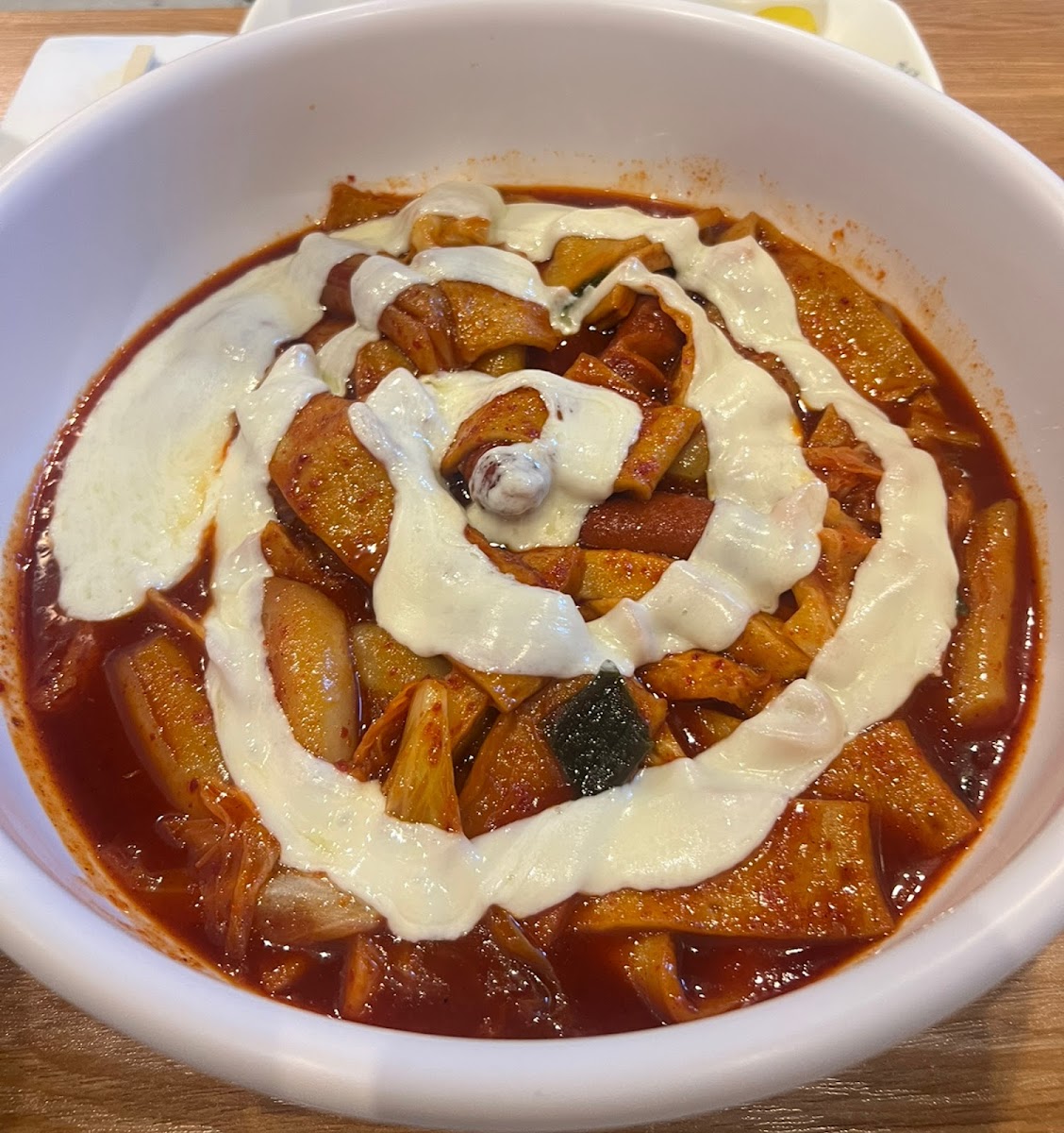 **Rating: 4.5/5** YUP DDUK is a must-visit for lovers of spicy Korean cuisine. One of Their signature dish, a big bowl of delicious components: chewy rice cakes, tender fish cakes, and crunchy cabbage, all topped with a generous layer of gooey mozzarella cheese that adds a creamy counterbalance to the heat. is a fiery delight that will satisfy any heat seeker. The noodles are perfectly cooked, soaking up the rich, spicy sauce that's packed with flavor. Enhance your meal with add-ons like savory sausages, plump dumplings, and crispy fried spam, which provide even more texture and taste. Each element blends harmoniously, creating a deeply satisfying and memorable culinary experience. The restaurant's vibrant atmosphere and friendly service further enhance the dining experience, making YUP DDUK an excellent choice for those craving a bold and hearty meal.